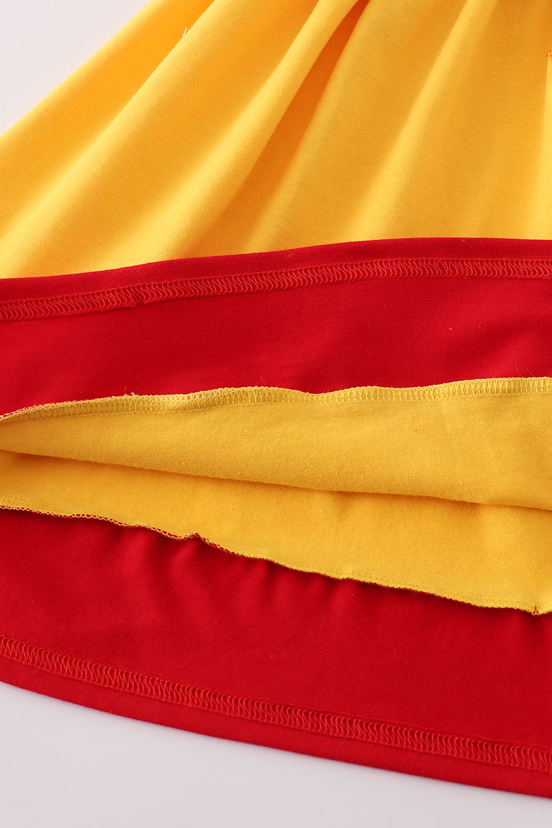 This delightful apple embroidery dress combines charm and playfulness with its adorable bow detail and flirty ruffles. Perfect for sunny days and special occasions, it adds a sweet touch to any little one's wardrobe. The carefully crafted apple embroidery brings a whimsical, fruity flair that's sure to harvest compliments!
