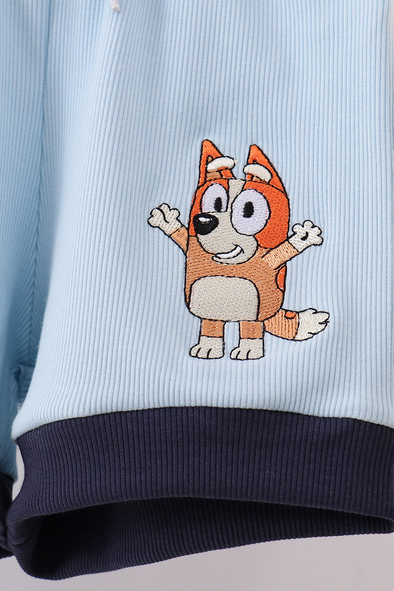 Dive into comfort with this charming blue shorts set, featuring playful character embroidery and classic stripes that bring personality to playtime. The soft, breathable fabric keeps kids cool and comfortable all day long, while the fun design sparks imagination and joy. Perfect for casual outings, lounging at home, or making a splash at the beach. A versatile wardrobe essential that combines style with everyday wearability.