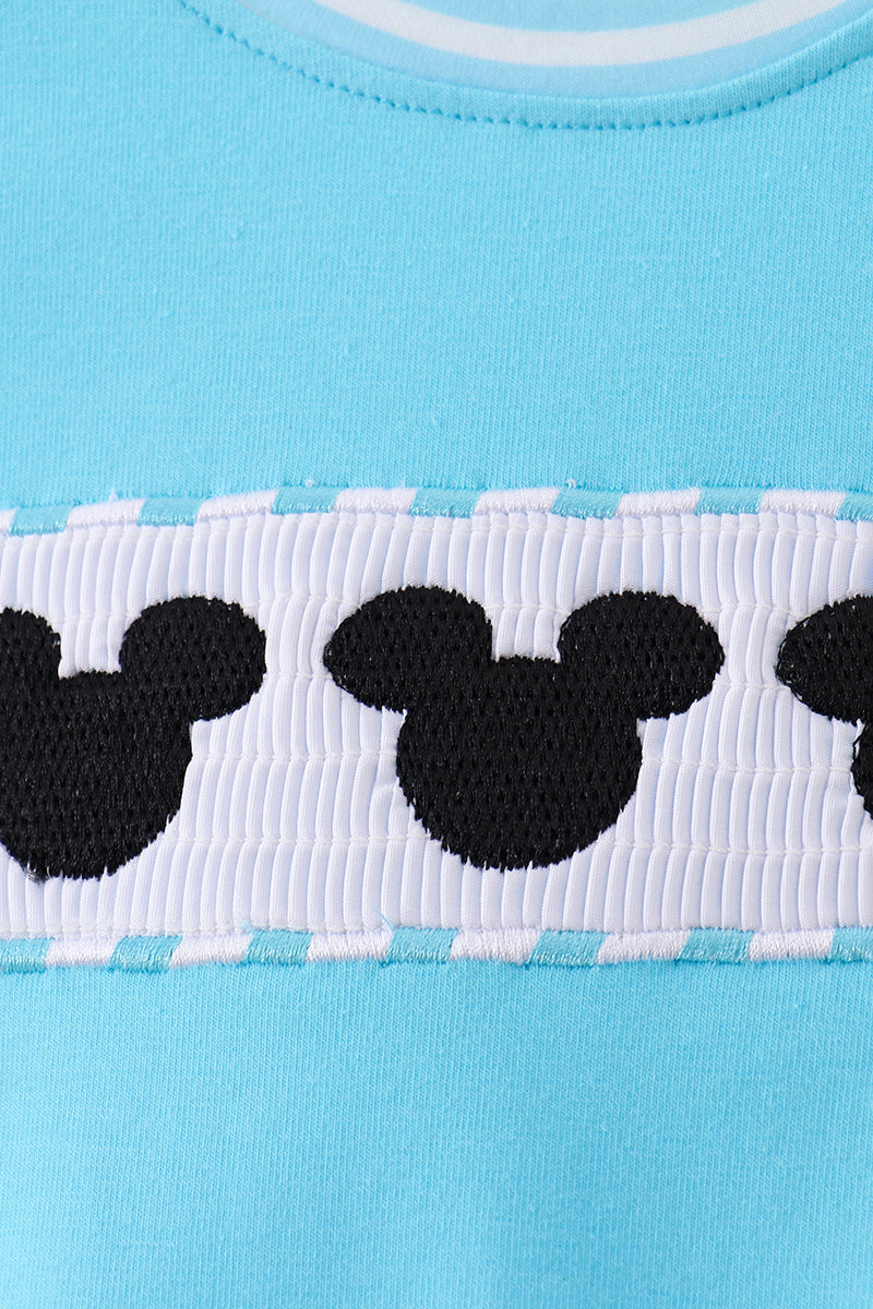 Adorable blue romper featuring charming character details and a smocked bodice for the perfect fit. This playful one-piece combines comfort with style, making it ideal for playdates, family outings, or everyday adventures. The soft fabric and classic smocking design ensure your little one stays cozy while looking absolutely precious. A wardrobe essential that's as fun as it is functional!