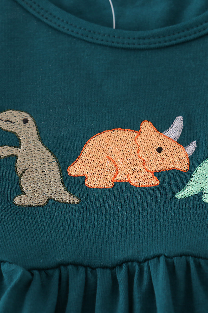 Blue dinosaur embroidery plaid ruffle pants set