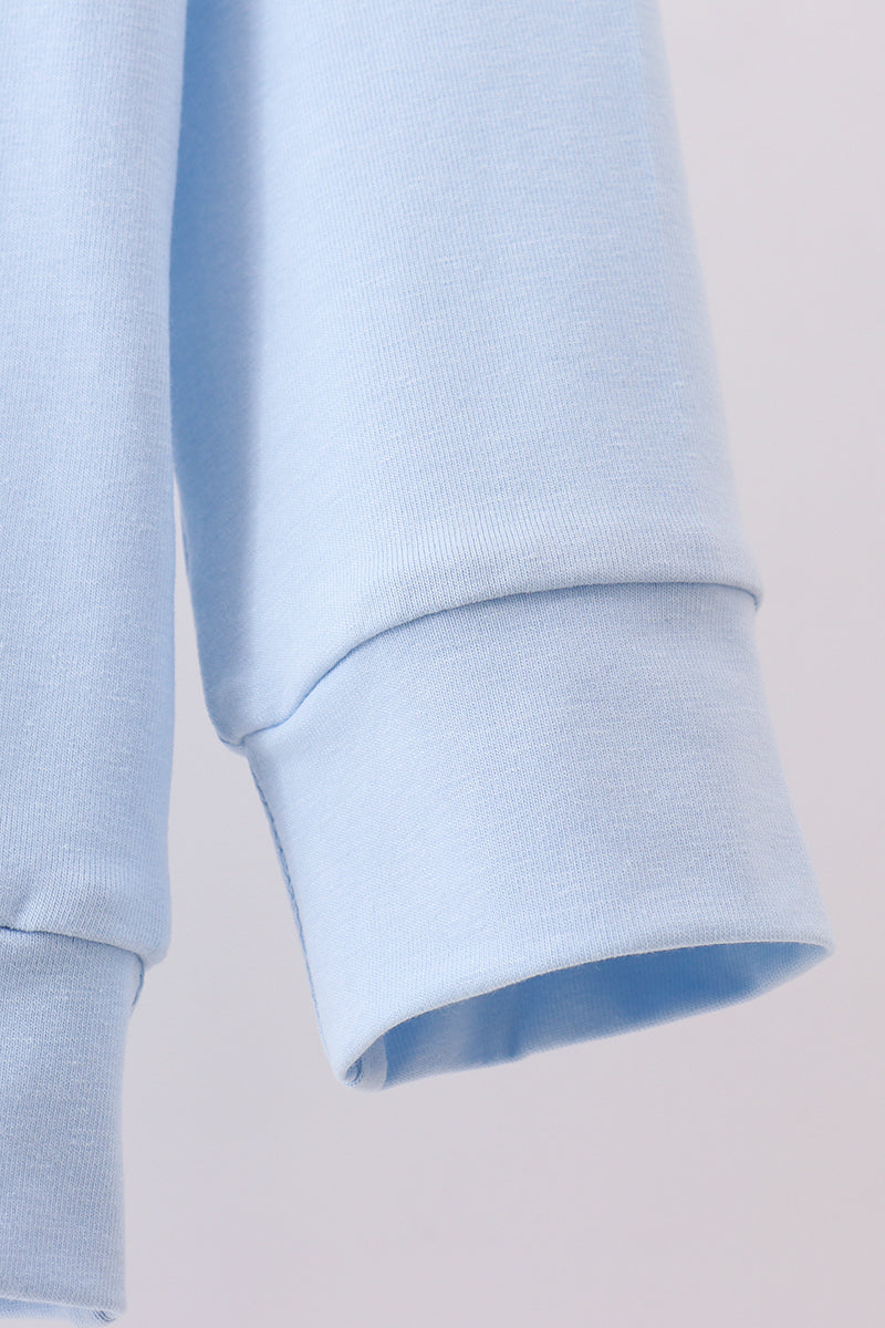 Blue puppy clover embroidery top