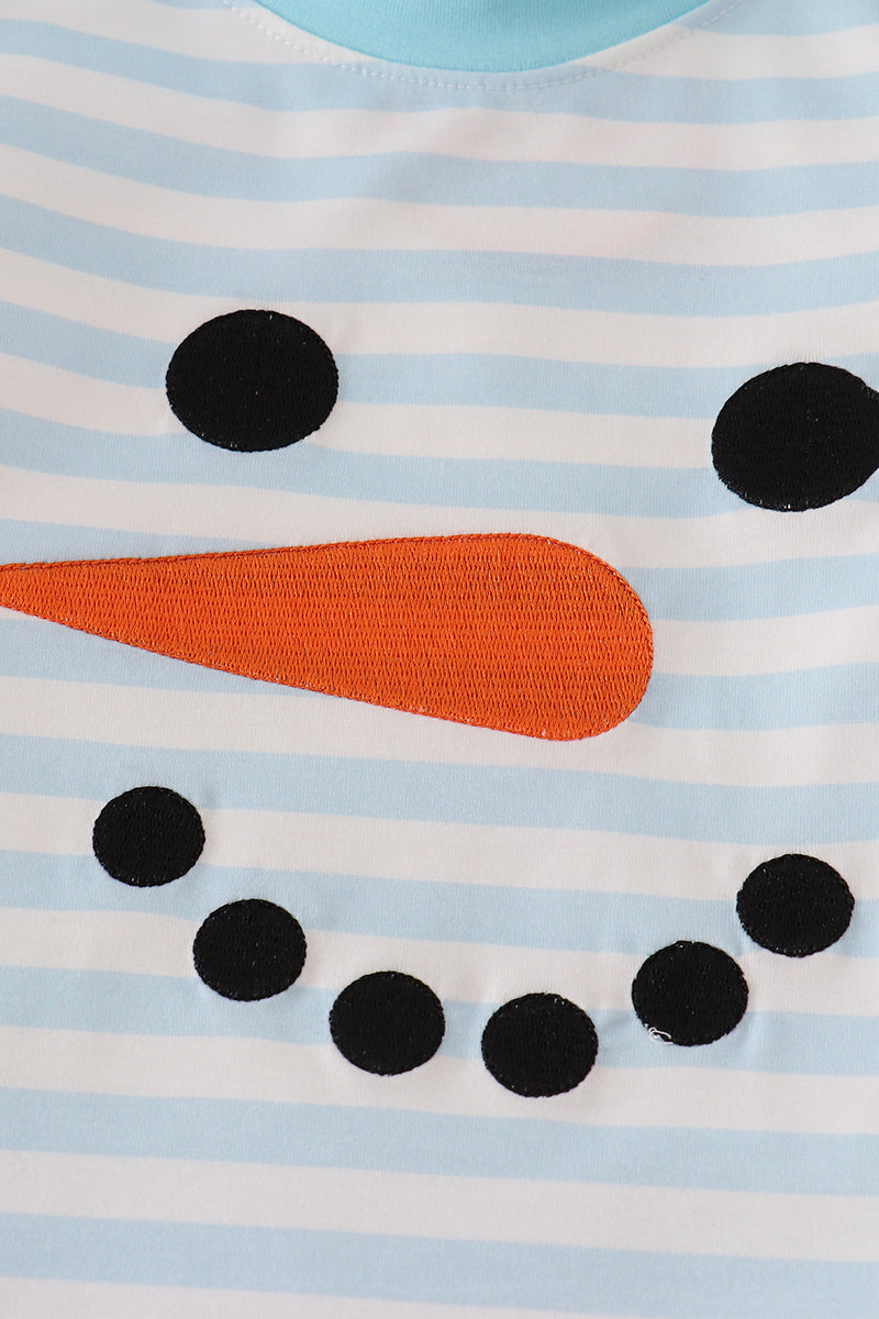 Bring a touch of winter whimsy to your wardrobe with this playful blue pants set featuring charming snowman embroidery and bold stripes. Perfect for cozy days and festive fun, it combines comfort with a cheerful design that brightens any outfit.
