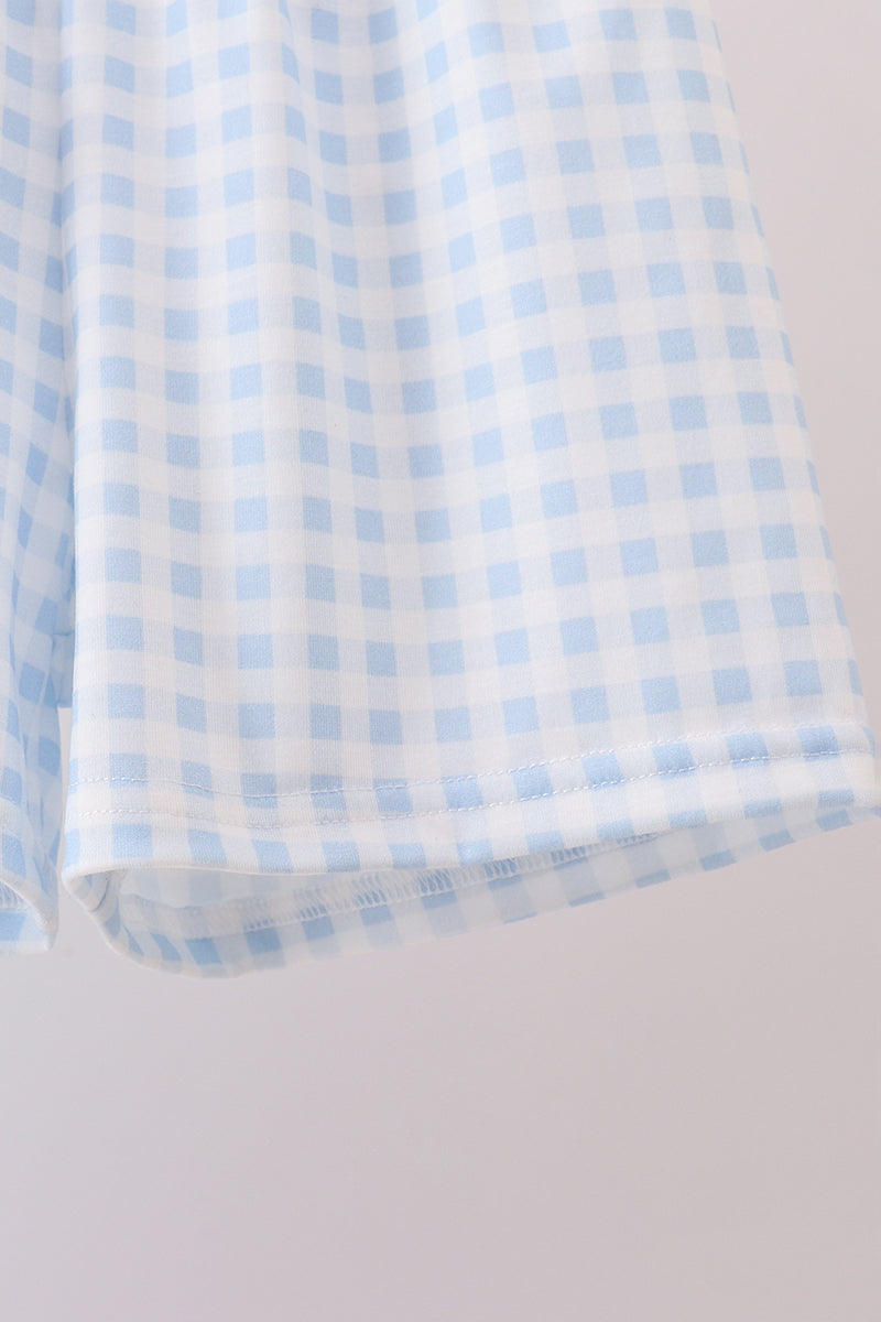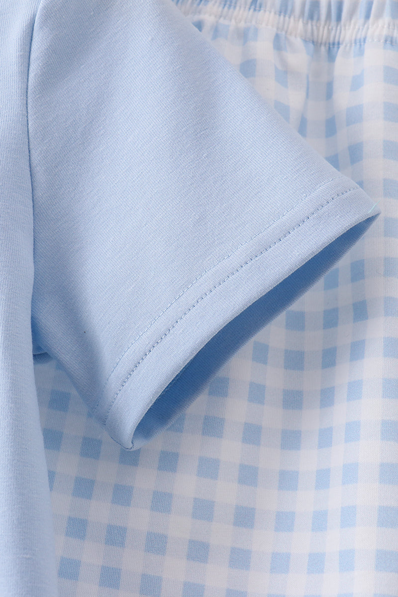 Blue tractor applique shorts set