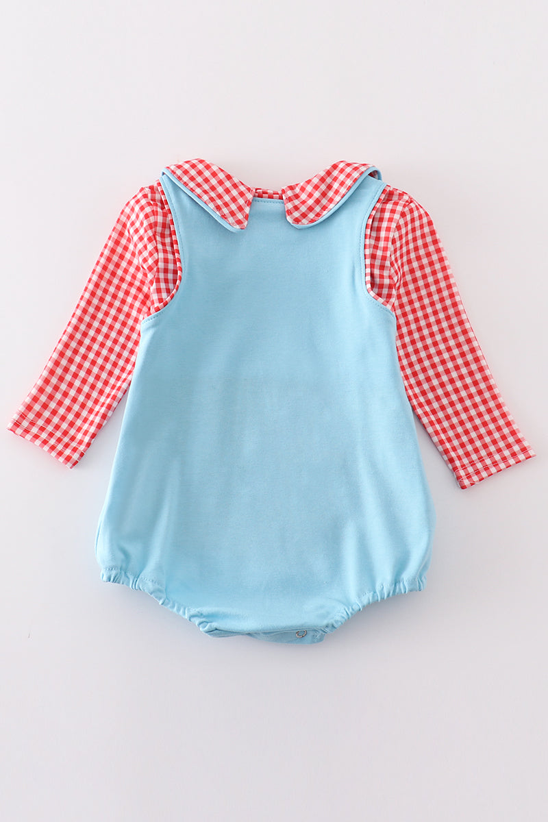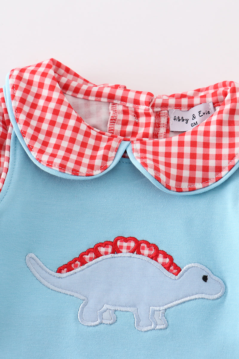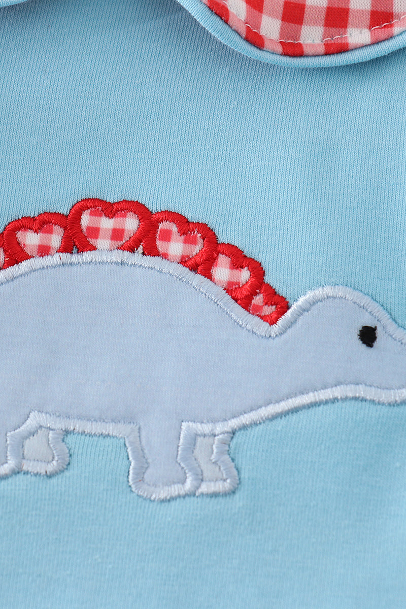 Spice up your little boy's wardrobe with this adorable and unique blue valentine dinosaur applique bubble set! Perfect for playful days and special occasions, this set features a fun and quirky design that will make your child stand out. Embrace the fun and let your little one's personality shine with this set.