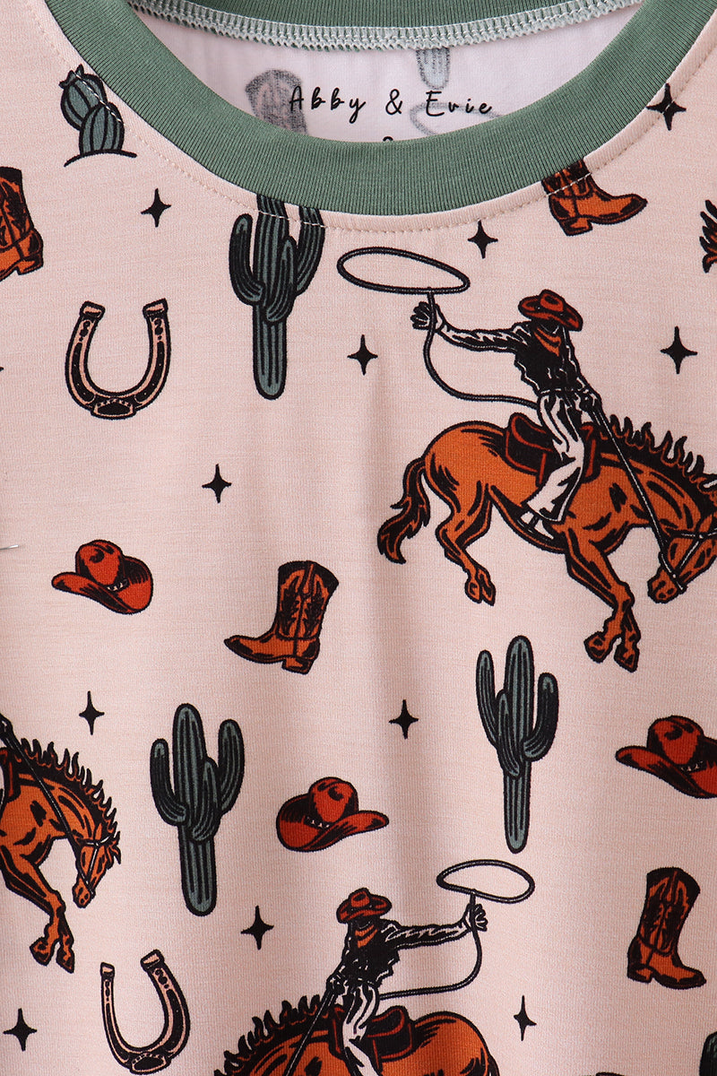 Step into a wild west adventure with this playful green cowboy bamboo pants set! Crafted from soft, breathable bamboo fabric, it keeps you comfy while you wrangle your day. The vibrant green adds a fresh spin on classic cowboy style, making every move feel like a lively dance on the prairie. Perfect for those who want to mix comfort with a dash of fun in their wardrobe. Yeehaw!