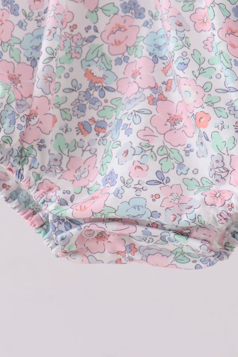 Twirl into springtime style with this charming green floral bubble! Delicate smocking details and playful ruffles create effortless movement and whimsical flair. The cheerful floral print brings garden-fresh vibes to any occasion, while the bubble silhouette offers a fun, flattering fit. Perfect for those who love a touch of whimsy with their wardrobe staples.