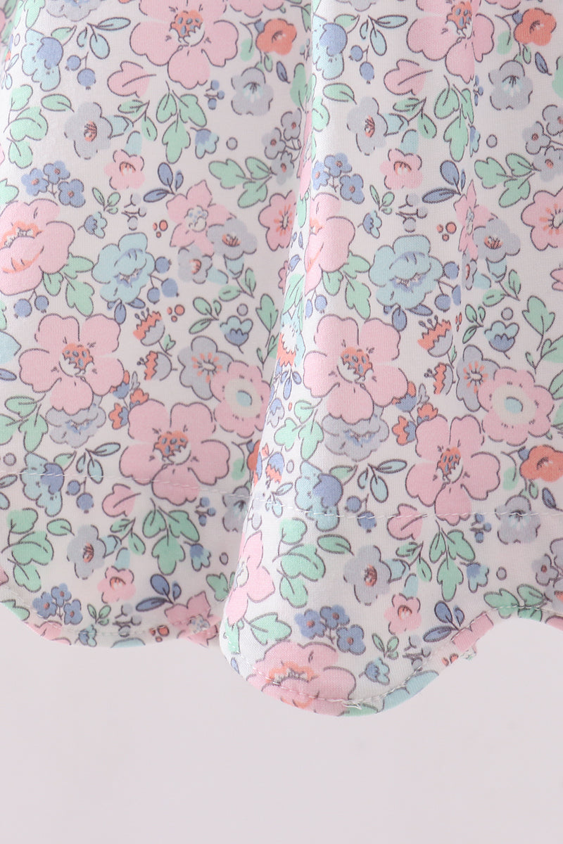 Green floral smocked ruffle shorts set