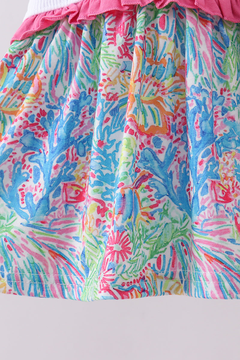 Pink character smocked ruffle bloomer set