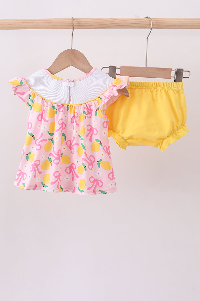 Pink lemon smocked bloomer set