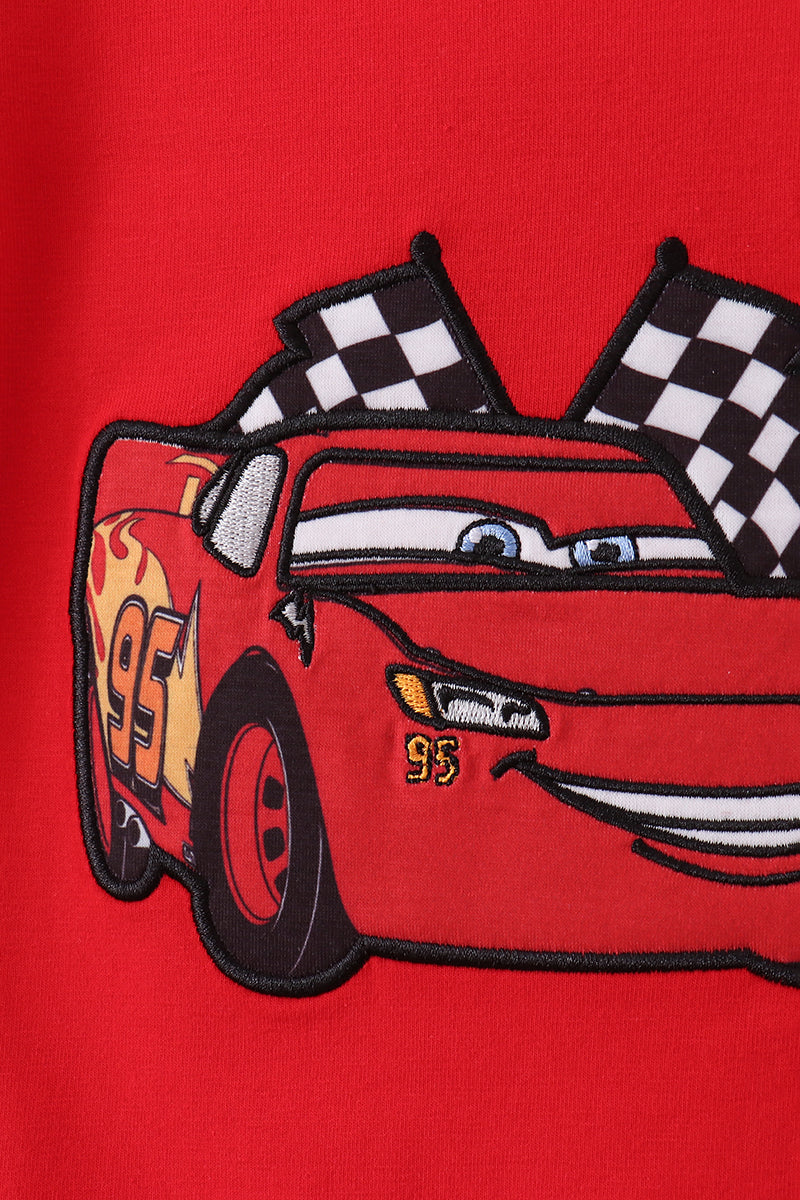 Red character applique checkered pants set