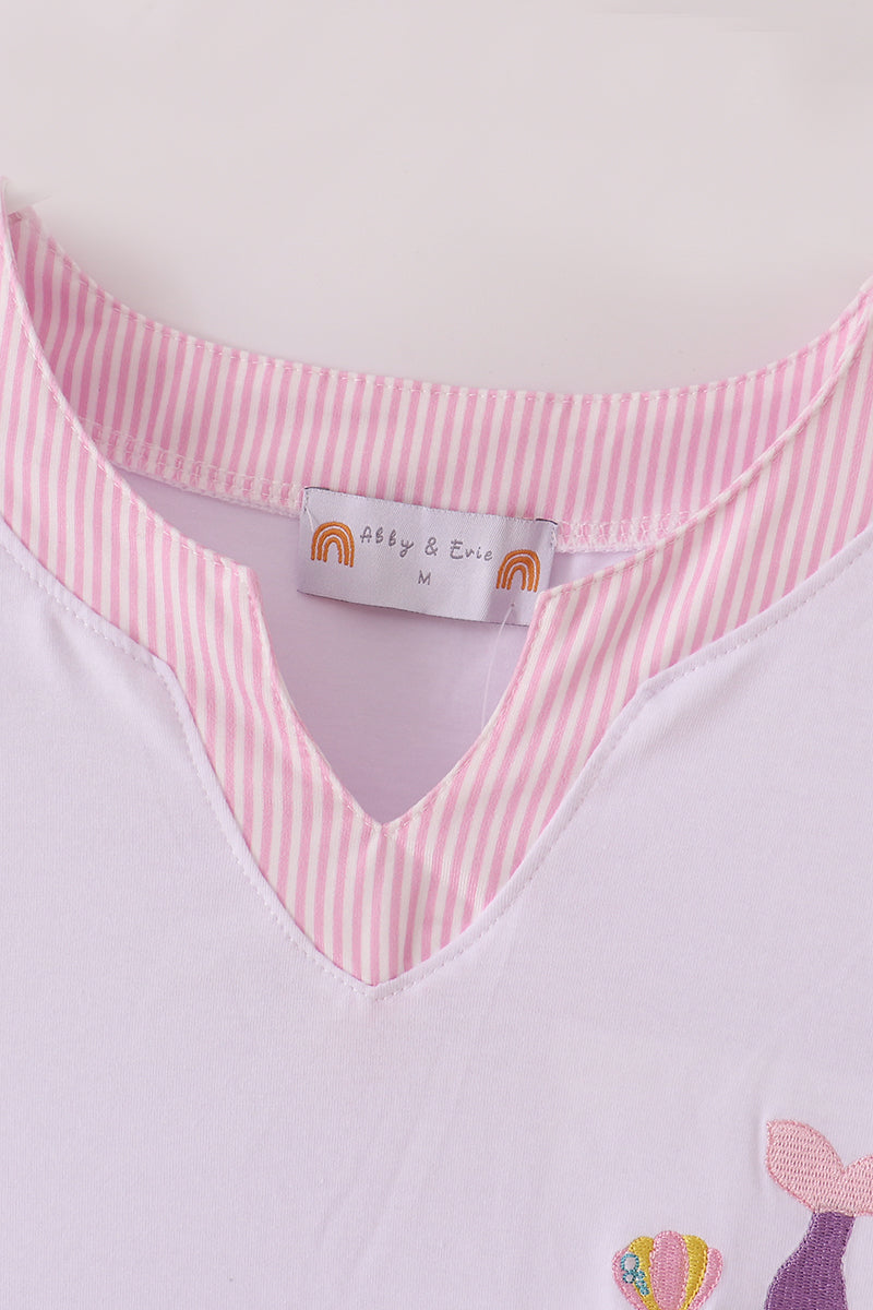Make a splash at the beach with this stylish cover up for moms and their mini-me's. The white mermaid embroidery adds a whimsical touch to this versatile piece. Perfect for relaxing by the water or taking a stroll along the shore. Go ahead, channel your inner mermaid!