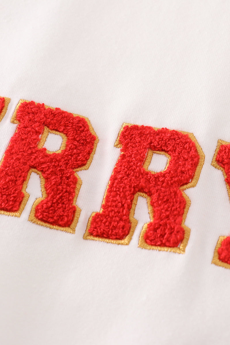 Spread some holiday cheer with this White Merry Christmas French Knot women's top! Its festive design and French knot detailing highlight your playful Christmas spirit. Perfect for casual gatherings and family photos. (Wink, wink to Santa!)